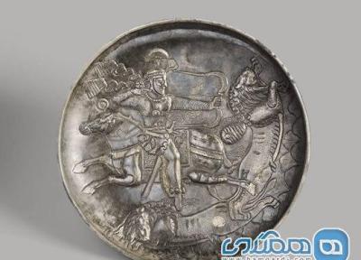بشقاب سیمین دوره ساسانی در موزه تاریخ ساری نمایش داده می شود