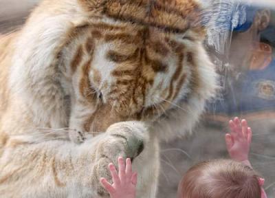 این عکس نفس گیر لحظه فوق العاده ای را نشان می دهد که یک ببر سرش را خم کرده و پنجه هایش را روی دستان یک دختر کوچک گذاشته است.