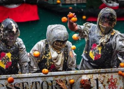 ایتالیایی ها در شهر شمالی ایورا، فصل کارناوال را با نبرد با پرتقال جشن گرفتند، جایی که شرکت کنندگان با هزاران پرتقال یکدیگر را هدف قرار گرفتند.