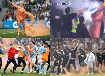 دربی ملبورن بین ملبورن سیتی و ملبورن ویکتوری پس از صحنه های تکان دهنده با هجوم طرفداران به زمین جنجالی شد.
